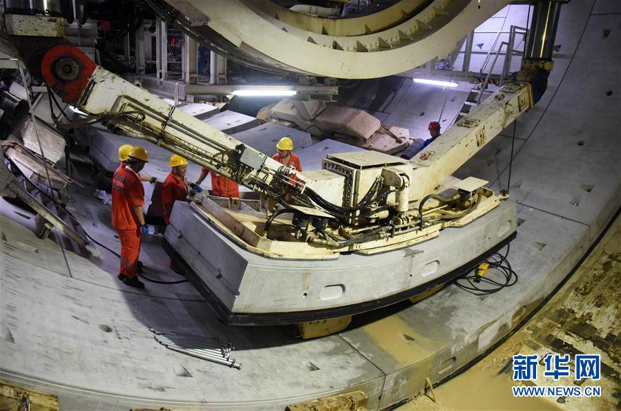 7月29日,“萬(wàn)里黃河第一隧”——濟(jì)南黃河隧道工程施工人員在施工作業(yè)。新華社記者王凱攝