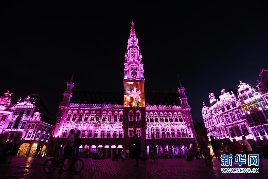 7月29日,人們在比利時布魯塞爾大廣場欣賞聲光秀,市政廳外墻上投射出鮮花地毯主題的圖案。7月29日,比利時布魯塞爾大廣場舉行大型聲光秀。藝術(shù)家在市政廳等歷史建筑上投影文字和圖案,紀(jì)念這個夏天受新冠疫情影響而不能如期舉辦的文化活動。新華社記者鄭煥松攝