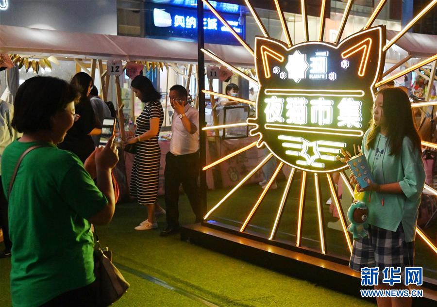 七月上旬開(kāi)始,位于河南鄭州的“夜貓市集”為夜經(jīng)濟(jì)增添了許多“萌”元素。每晚6點(diǎn)到10點(diǎn)半,“夜貓市集”上舉辦寵物展示與直播、寵物領(lǐng)養(yǎng)、定制畫(huà)像、“云吸貓”等消費(fèi)活動(dòng)。
