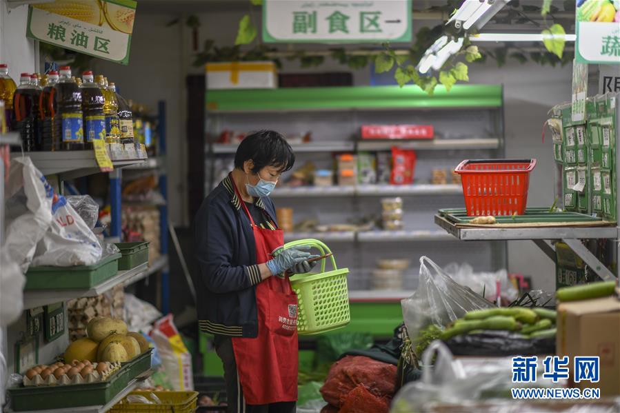 7月30日,在烏魯木齊經(jīng)濟技術開發(fā)區(qū)(頭屯河區(qū))天鵝湖社區(qū)一家超市,商販按照住戶的訂單配送果蔬。新華社記者趙戈攝