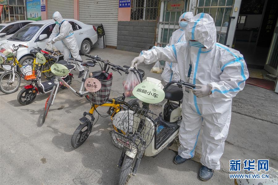 8月3日,在烏魯木齊天山區(qū)西河壩前街社區(qū),社區(qū)工作人員準(zhǔn)備騎上”跑腿小車“為居民送去生活物品。新疆烏魯木齊市天山區(qū)西河壩前街社區(qū)主次干道較多,院落分布分散。新冠肺炎疫情防控期間,社區(qū)整合現(xiàn)有資源,將暫時閑置的自行車、電動車集中起來,貼上“跑腿小車”標(biāo)識,成立便民服務(wù)隊,社區(qū)工作人員通過“跑腿小車”可將居民網(wǎng)絡(luò)定制的“菜袋子”“藥盒子”快速送達(dá),給居民帶來方便。新華社記者趙戈攝
