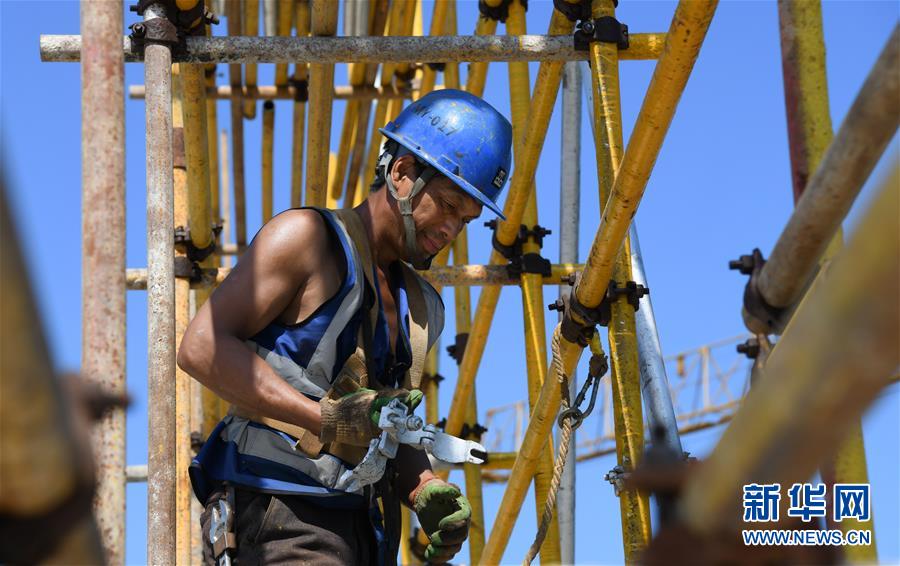 8月3日,工人在長江文創(chuàng)產(chǎn)業(yè)園項目工地施工。進(jìn)入8月,武漢迎來持續(xù)高溫天氣。在湖北廣電傳媒基地工程的工地上,中建三局總承包公司1500多名工人持續(xù)奮戰(zhàn),力保工程進(jìn)度。該工程是我國中部地區(qū)首個國家級廣播影視媒體基地,由湖北廣電傳媒大廈項目、長江文創(chuàng)產(chǎn)業(yè)園項目、廣電生活配套項目三大板塊組成,總建設(shè)規(guī)模130萬平方米。自今年3月25日獲批正式復(fù)工以來,承建方克服困難,把因疫情影響耽誤的工期趕了回來,預(yù)計將按原計劃完成建設(shè)任務(wù)。新華社記者程敏攝