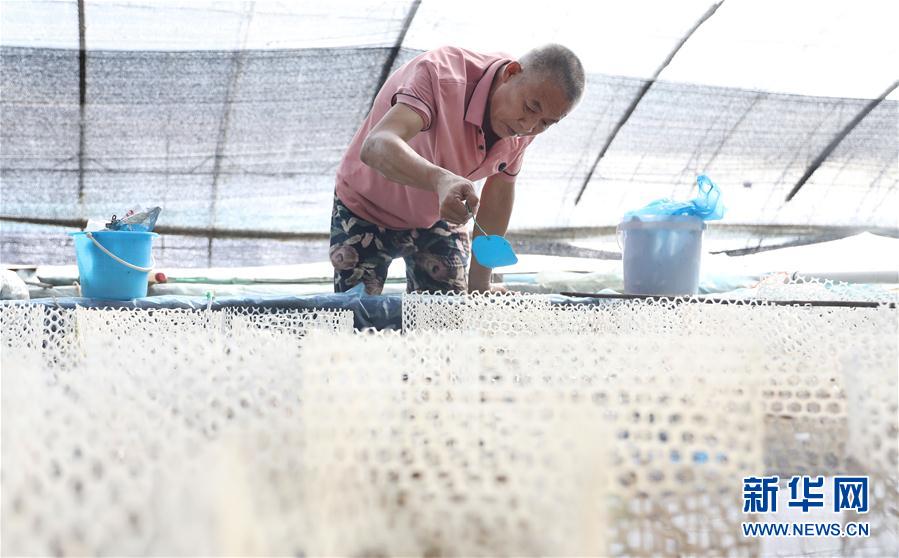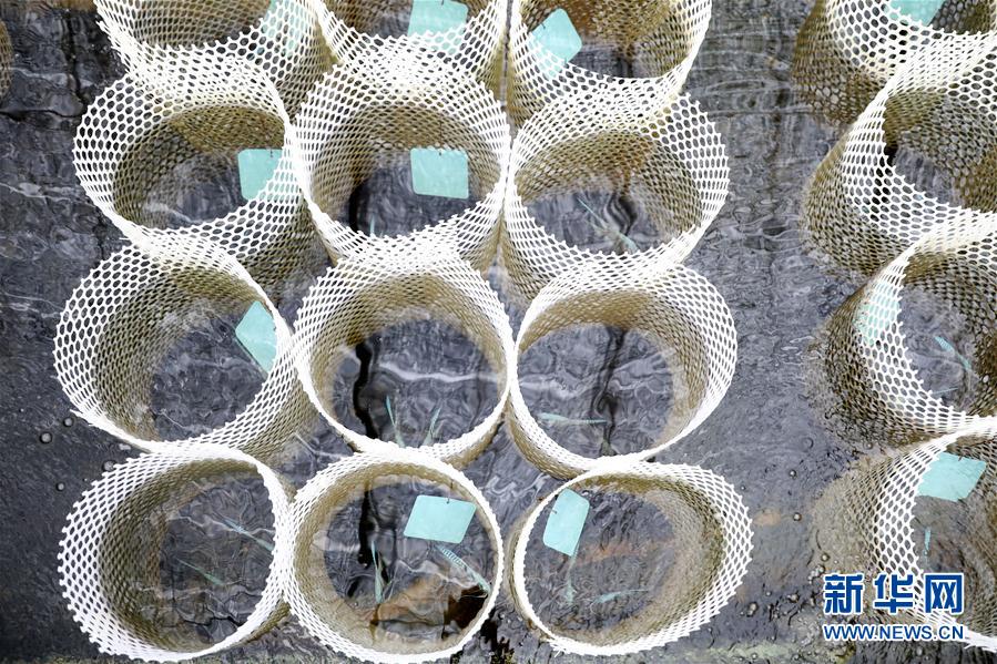 這是張忠堡村村民李國(guó)鵬養(yǎng)殖池里的觀賞魚育種筐(8月4日攝)。新華社記者姚劍鋒攝
