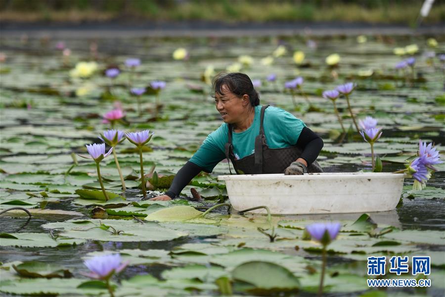8月4日,藝溯家生態(tài)農(nóng)場(chǎng)工作人員在池塘采摘香水蓮花。近年來,位于浙江湖州吳興區(qū)八里店鎮(zhèn)移沿山村的藝溯家生態(tài)農(nóng)場(chǎng),在約45畝的傳統(tǒng)水產(chǎn)養(yǎng)殖池塘上規(guī)?;N植香水蓮花,既凈化水質(zhì),又提高了經(jīng)濟(jì)效益。農(nóng)場(chǎng)還設(shè)計(jì)出種植、采摘和加工香水蓮花的工藝流程,以面向更多農(nóng)戶推廣。新華社記者黃宗治攝