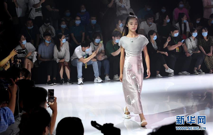 8月7日,小模特在T臺上展示童裝。當日,2020中國(河南)國際大學生時裝周舉行童裝設(shè)計專場展示。8月5日至7日,2020中國(河南)國際大學生時裝周在河南省新密市豫發(fā)密蘭小鎮(zhèn)舉行。新華社記者朱祥攝