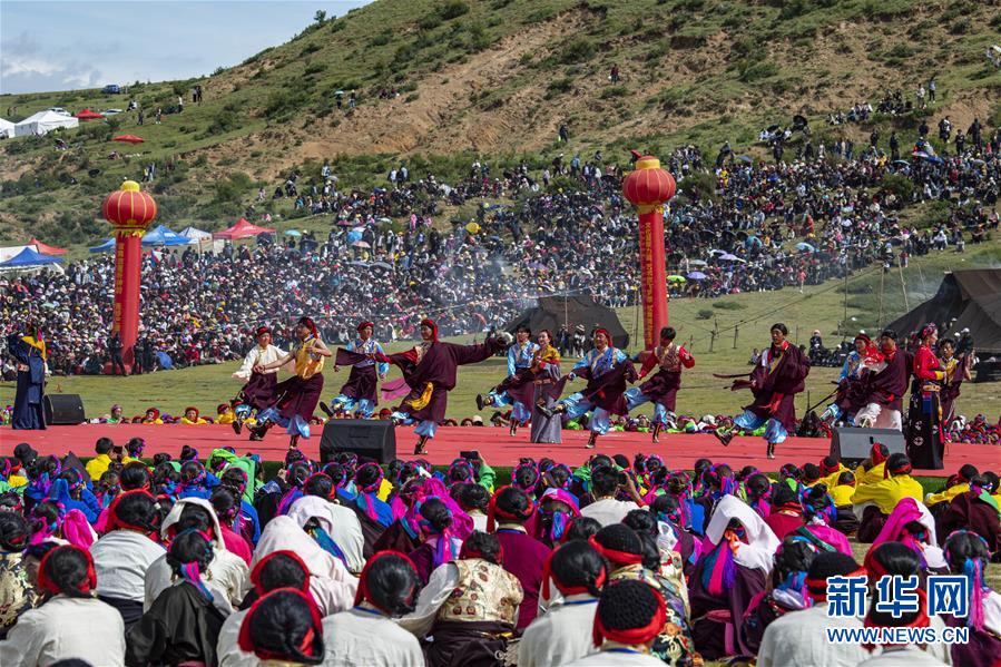 8月7日,在西藏首屆弦子舞展演現(xiàn)場,演出人員在表演舞蹈《弦鼓情緣》。當(dāng)日,西藏首屆弦子舞展演在昌都市芒康縣舉行。眾多演員同臺(tái)獻(xiàn)藝,表演國家級(jí)非物質(zhì)文化遺產(chǎn)弦子舞,吸引西藏各地的群眾前來觀看。新華社記者孫非攝