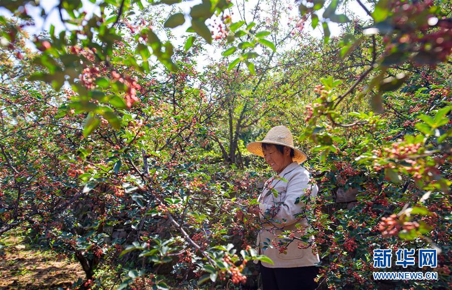 8月9日,武安市徘徊鎮(zhèn)后李甲村農(nóng)民在花椒種植基地采摘花椒。近日,河北省武安市花椒進(jìn)入收獲季節(jié),當(dāng)?shù)剞r(nóng)民搶抓農(nóng)時,花椒種植基地里一派忙碌景象。近年來,武安市將花椒產(chǎn)業(yè)作為脫貧增收的重要抓手,因地制宜擴大花椒種植規(guī)模。目前,全市花椒種植面積約12萬畝。新華社記者王曉攝。