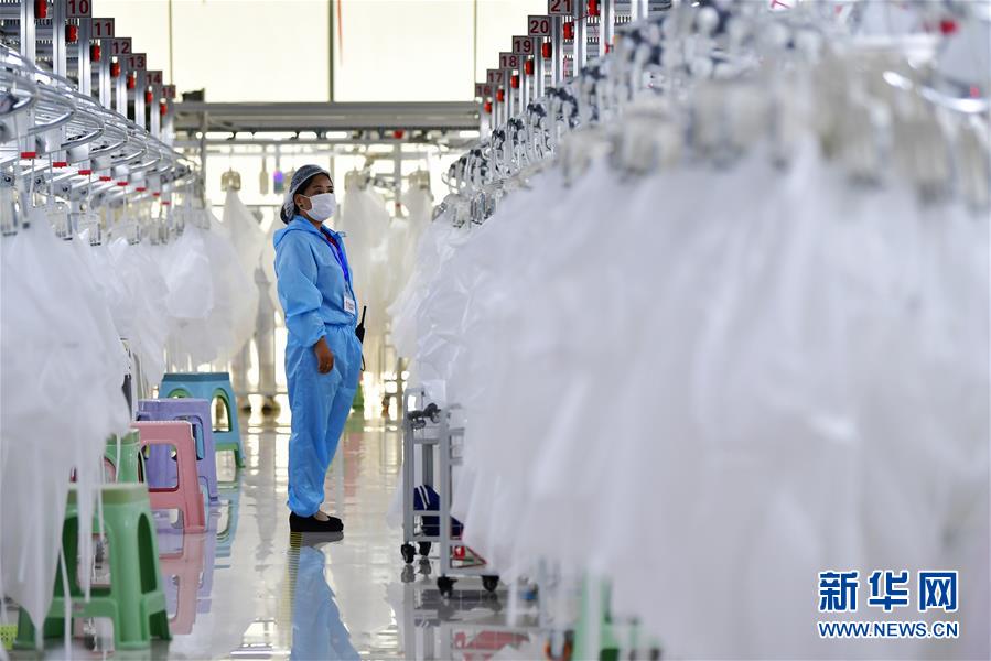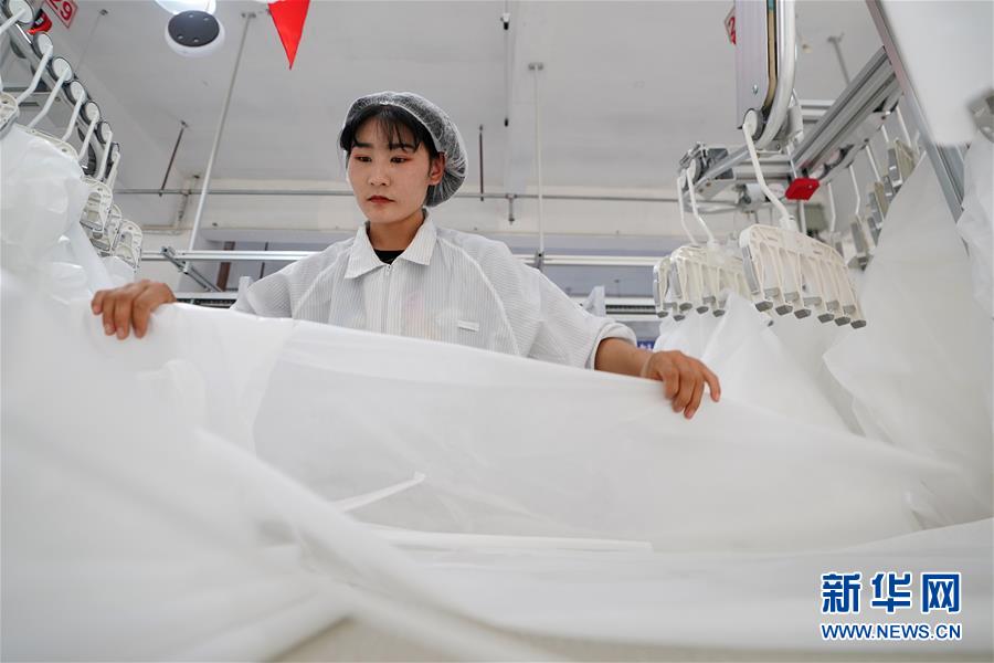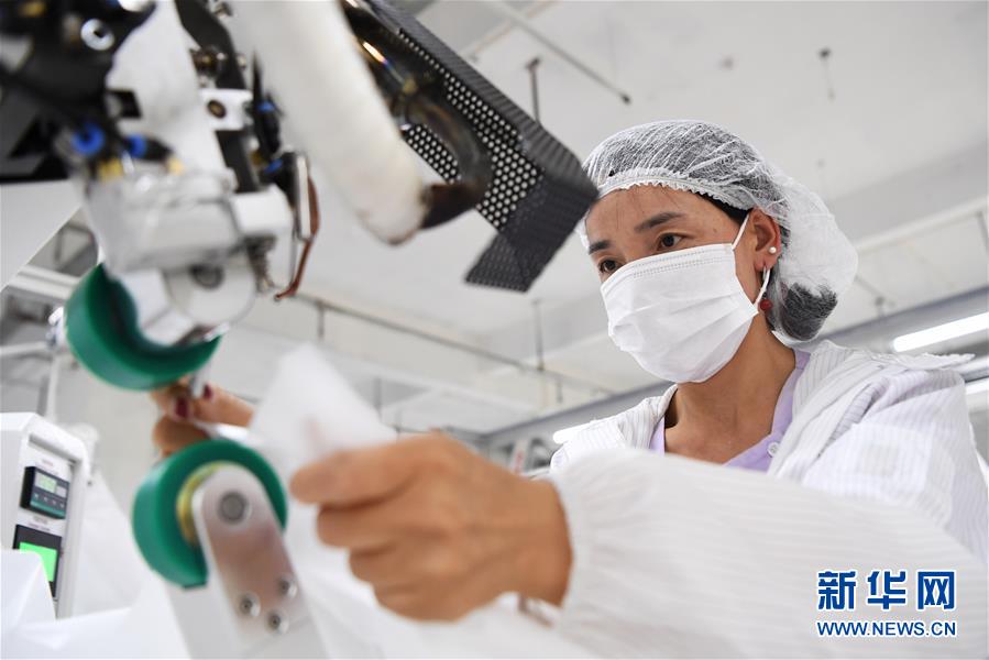 8月9日,甘肅拓奇扶貧車間的員工在服裝加工生產(chǎn)線上作業(yè)。甘肅拓奇扶貧車間位于甘肅省臨夏回族自治州積石山縣,是依托東西部扶貧協(xié)作平臺引進(jìn)的服裝加工企業(yè)。扶貧車間建成投產(chǎn)以來帶動就業(yè)近300人,其中吸納建檔立卡貧困戶就業(yè)110人,實(shí)現(xiàn)了貧困群眾就地就近就業(yè)增收的目的,為助推當(dāng)?shù)孛撠毠约翱h域經(jīng)濟(jì)發(fā)展發(fā)揮了重要作用。新華社記者陳斌攝。