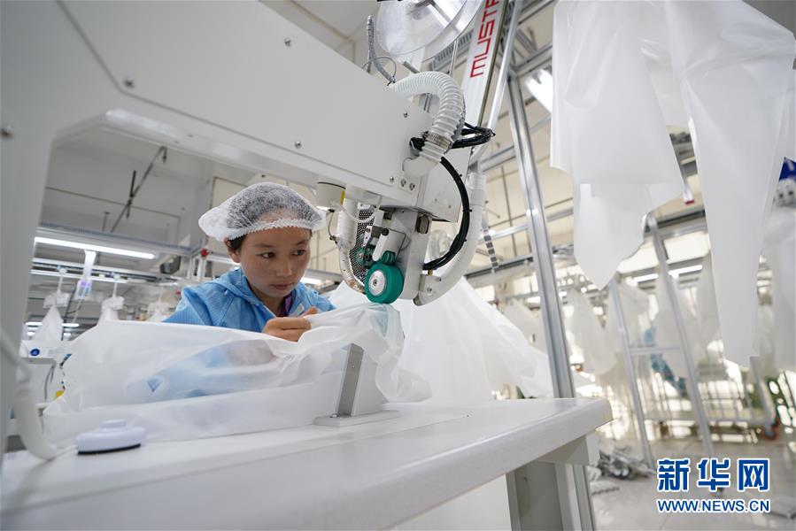 8月9日,甘肅拓奇扶貧車間的員工在服裝加工生產(chǎn)線上作業(yè)。甘肅拓奇扶貧車間位于甘肅省臨夏回族自治州積石山縣,是依托東西部扶貧協(xié)作平臺引進(jìn)的服裝加工企業(yè)。扶貧車間建成投產(chǎn)以來帶動就業(yè)近300人,其中吸納建檔立卡貧困戶就業(yè)110人,實(shí)現(xiàn)了貧困群眾就地就近就業(yè)增收的目的,為助推當(dāng)?shù)孛撠毠约翱h域經(jīng)濟(jì)發(fā)展發(fā)揮了重要作用。新華社記者邢廣利攝。