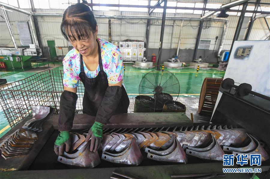 8月9日,河北大城縣南趙扶鎮(zhèn)一家旋耕機(jī)刀片生產(chǎn)企業(yè)員工在生產(chǎn)線上作業(yè)。河北省大城縣南趙扶鎮(zhèn)是該縣農(nóng)機(jī)配件行業(yè)傳統(tǒng)生產(chǎn)基地。疫情以來(lái),南趙扶鎮(zhèn)引導(dǎo)企業(yè)做好風(fēng)險(xiǎn)防范,在農(nóng)機(jī)配件行業(yè)與世界各地客商及品牌開(kāi)展方式多樣的合作,出口訂單不降反升。截至目前,該縣農(nóng)機(jī)配件行業(yè)出口總銷(xiāo)量達(dá)8000余萬(wàn)元,較去年同期增長(zhǎng)30%。新華社記者李曉果攝。