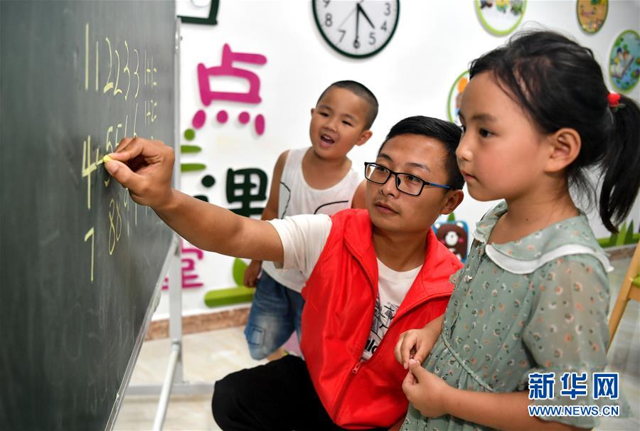 陜西安康市嵐皋縣城關(guān)鎮(zhèn)城北易地扶貧搬遷安置小區(qū)“四點(diǎn)半課堂”的老師在輔導(dǎo)孩子們學(xué)習(xí)數(shù)字(7月29日攝)。地處秦巴山區(qū)的嵐皋縣山多溝深,群眾居住分散,長(zhǎng)期以來(lái)易地搬遷成為這里脫貧攻堅(jiān)的重點(diǎn)。為避免易地搬遷群眾就業(yè)不充分、辦事不方便、管理不到位等問(wèn)題,嵐皋縣依托市場(chǎng)完善社區(qū)生活、醫(yī)療、教育、娛樂(lè)等服務(wù)設(shè)施,并開展技能培訓(xùn)、開辦社區(qū)工廠,讓搬遷居民“穩(wěn)得住”“能致富”。新華社記者劉瀟攝。