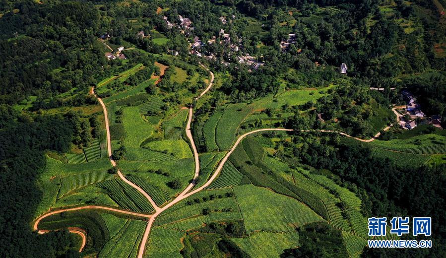 陜西省洛南縣石門鎮(zhèn)花廟村的連戶路(7月27日攝,無(wú)人機(jī)照片)。新華社記者劉瀟攝。