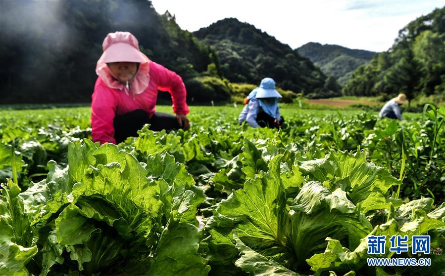 陜西寶雞市太白縣咀頭鎮(zhèn)塘口村的村民在菜地里勞作(7月4日攝)。近年來(lái),地處秦嶺腹地的陜西太白縣利用海拔高、晝夜溫差大等條件發(fā)展高山反季節(jié)無(wú)公害蔬菜種植。目前全縣85%的群眾從事蔬菜生產(chǎn),種植的反季節(jié)高山蔬菜涵蓋28大類390余種,暢銷全國(guó)。新華社記者劉瀟攝。
