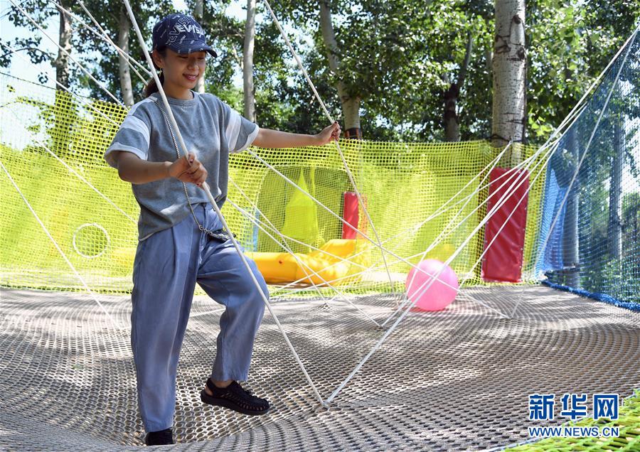 8月9日,市民在南宮五洲植物樂園體驗(yàn)“叢林網(wǎng)繩”。近期,在做好新冠肺炎疫情防控的前提下,位于北京市豐臺(tái)區(qū)的南宮五洲植物樂園戶外戲水區(qū)對(duì)外開放。市民在戲水的同時(shí)還可以在沙灘上畫沙畫、在新游樂項(xiàng)目“叢林網(wǎng)繩”里穿梭跳躍,豐富暑期生活。新華社記者任超攝。