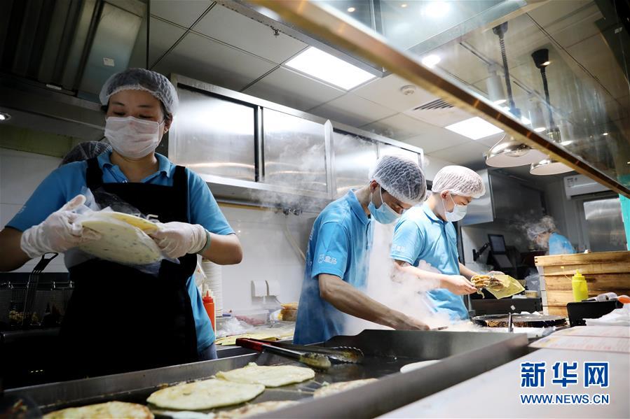 在上海地鐵13號線世博會博物館地鐵站附近的一家盒小馬服務點,工作人員在制作煎餅果子等早餐餐品(7月17日攝)。近年來,在上海崛起了一批以盒馬、叮咚、拼多多為代表的在線經(jīng)濟新力量,在助力脫貧攻堅、提升城市居民品質生活方面發(fā)揮著重要作用。電商加持下的“云農(nóng)業(yè)”加速發(fā)展,一端為市民提供更便宜新鮮的農(nóng)產(chǎn)品,另一端讓山區(qū)的優(yōu)質產(chǎn)品加速進入城市餐桌,化解交通不便、農(nóng)產(chǎn)品滯銷等問題。新華社記者方喆攝。