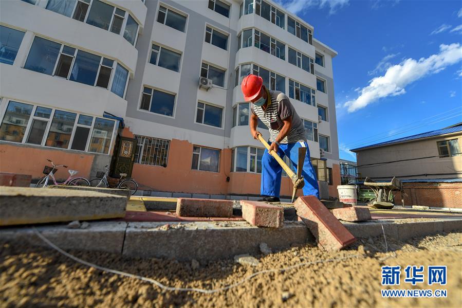 8月11日,工人在鎮(zhèn)賚縣慶生社區(qū)一老舊小區(qū)內(nèi)鋪設路面方磚。2019年底開始,吉林省白城市鎮(zhèn)賚縣對超過20年房齡的老舊小區(qū)進行全面改造升級,優(yōu)先完成樓體內(nèi)外墻面、樓頂防水、道路硬化工程,并協(xié)調(diào)各職能部門對地下管網(wǎng)、綠化美化等基礎設施問題進行統(tǒng)籌施工,減少后期二次施工造成的環(huán)境破壞和資源浪費。一期工程預計于今年10月完工,施工完成后,政府相關部門將為這些小區(qū)統(tǒng)一配備物業(yè)公司,解決后期設施維護問題。新華社記者張楠攝