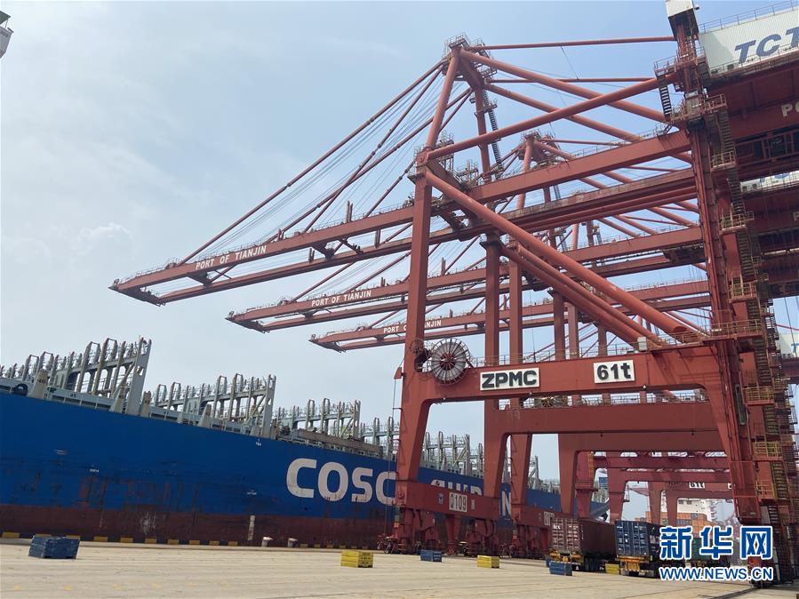 貨車(chē)在天津港集裝箱碼頭等待直提貨物(8月4日攝)。新華社記者張宇琪攝