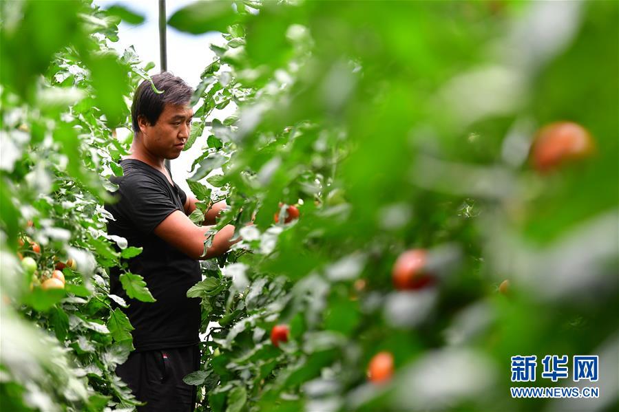 8月11日,在甘肅省臨夏回族自治州臨夏縣先鋒鄉(xiāng)前韓村,搬遷戶蔣元財在日光溫室內(nèi)采摘西紅柿。近年來,甘肅省臨夏回族自治州臨夏縣把易地扶貧搬遷作為打贏脫貧攻堅戰(zhàn)的重要任務(wù),科學推進易地扶貧搬遷和脫貧攻堅工作。為了讓搬遷群眾能夠安居樂業(yè),當?shù)卣⒅胤龀趾罄m(xù)產(chǎn)業(yè)發(fā)展,引導(dǎo)搬遷群眾發(fā)展日光溫室、布鞋加工、觀光農(nóng)業(yè)、特色種養(yǎng)殖等產(chǎn)業(yè),幫助搬遷群眾實現(xiàn)就近就業(yè)、拓寬增收渠道,確保搬遷群眾“搬得出、穩(wěn)得住、有事做、能致富”。新華社記者陳斌攝
