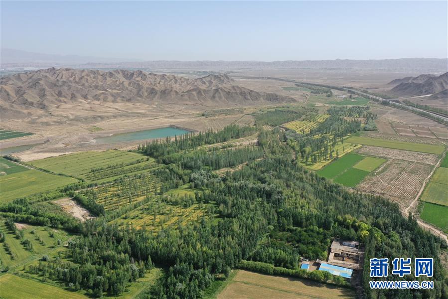 甘肅省金昌市永昌縣下四壩村村民徐文國的家庭林場(7月10日攝,無人機(jī)照片)。新華社記者 杜哲宇 攝