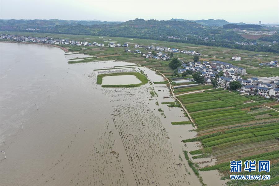 8月12日,重慶市潼南區(qū)桂林街道雙壩村蔬菜基地,部分低洼地帶的農(nóng)作物被洪水淹沒(méi)(無(wú)人機(jī)照片)。受強(qiáng)降雨影響,涪江潼南段迎來(lái)過(guò)境洪水。新華社記者 黃偉 攝