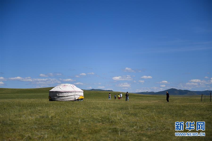 游客在克什克騰旗貢格爾草原上游玩(8月11日攝)??耸部蓑v旗位于內(nèi)蒙古自治區(qū)赤峰市西北部,境內(nèi)的湖泊、河流、草原、森林等自然景觀,讓人們流連忘返。新華社記者劉磊攝
