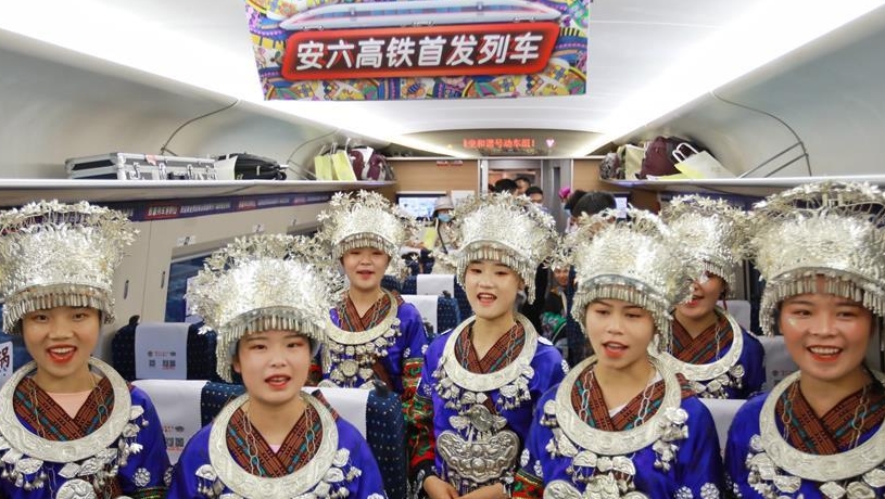7月8日,在六盤水首發(fā)高鐵G2954次列車上,演員為乘客表演節(jié)目。