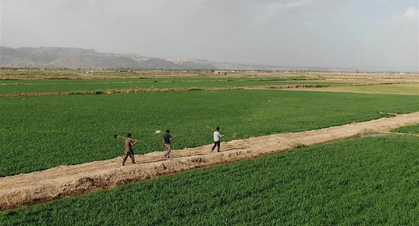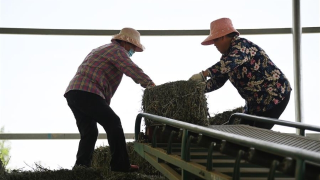 5月28日,內(nèi)蒙古巴彥淖爾市臨河區(qū)新華鎮(zhèn)新樂村村民在田間勞作。