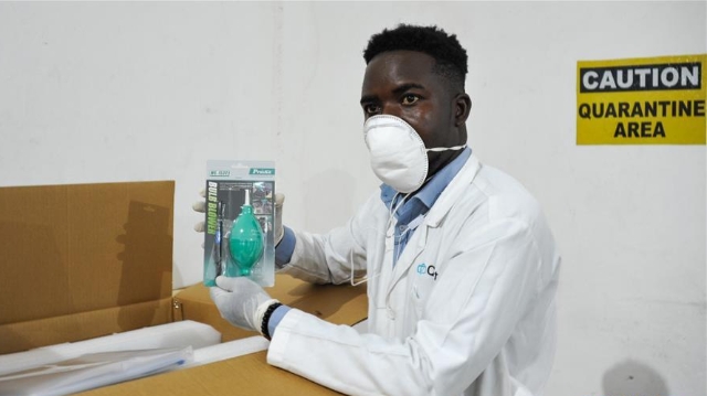 5月17日,在江西省博物館新館,參觀者入館前測量體溫。