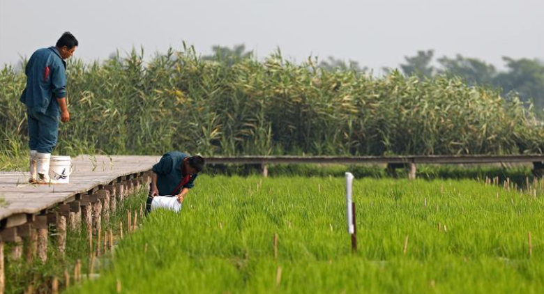 西藏山南市桑日縣程巴村村民進(jìn)行扦插苗泡水作業(yè)(3月11日攝)。