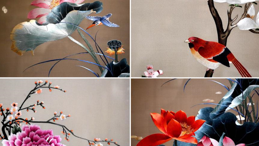 在開封市素花宋繡工藝有限公司的展示館里,王素花向徒弟劉冬紅講解刺繡作品上的難點(diǎn)(7月30日攝)。