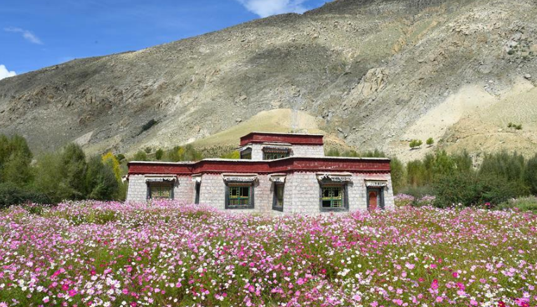 時(shí)值中秋,西藏拉薩市尼木縣的山谷間,大片波斯菊爭(zhēng)相盛開,宛如花的海洋。