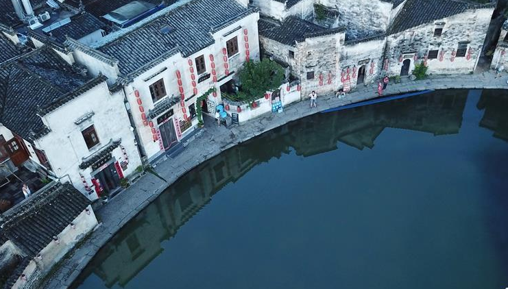 盛夏時節(jié),晨光中的安徽黟縣宏村風(fēng)景區(qū)呈現(xiàn)出一片迷人的景象,美不勝收。