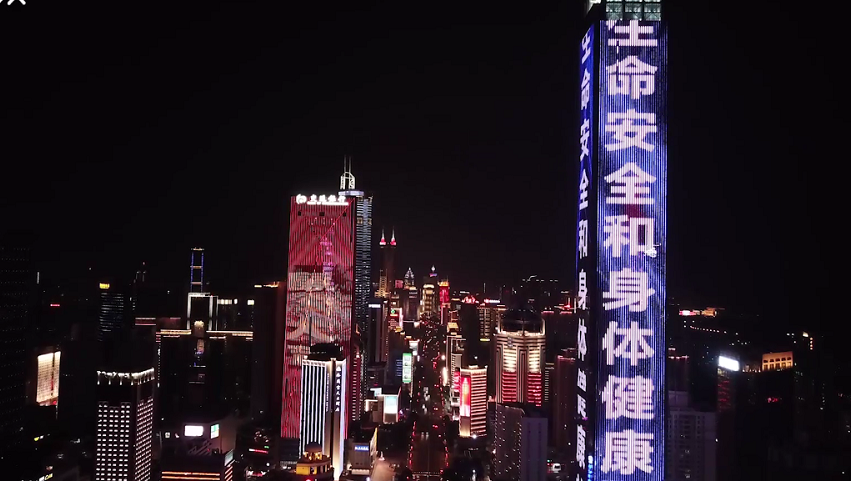 新型冠狀病毒肺炎疫情爆發(fā)以來,福田區(qū)眾志成城,防控疫情。平安金融大廈、漢國大廈等眾多樓體及大屏幕紛紛亮起。