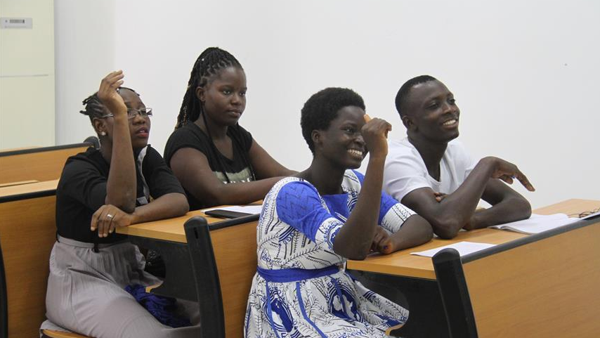 在多哥首都洛美,洛美大學(xué)中文系學(xué)生在孔子學(xué)院上中文課。
