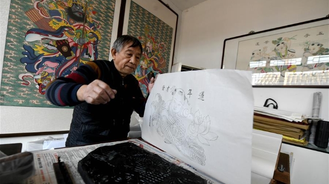 臨近春節(jié),作為國家級非物質(zhì)文化遺產(chǎn)楊柳青年畫的代表性傳承人霍慶順在天津玉成號畫莊忙碌著趕制年畫。