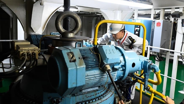 1月15日,??诤J戮止ぷ魅藛T對停靠在??谀细鄞a頭的粵海鐵4號客滾船進行春運前專項檢查。