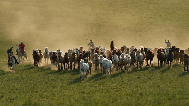 內蒙古赤峰牧民草原馴馬 群馬奔騰景象壯觀