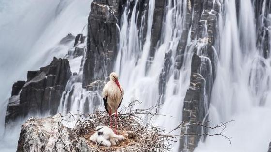 4月22日,一群天鵝在沽源縣閃電河國(guó)家級(jí)濕地公園的天鵝湖覓食。