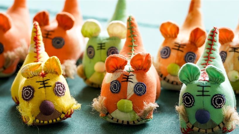 4月8日,在重慶石柱中益鄉(xiāng)巾幗扶貧工坊,一名當(dāng)?shù)貗D女在縫制文創(chuàng)產(chǎn)品。