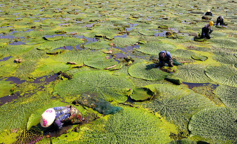 罕見的壯觀場面!萬余畝芡實(shí)迎來收獲季