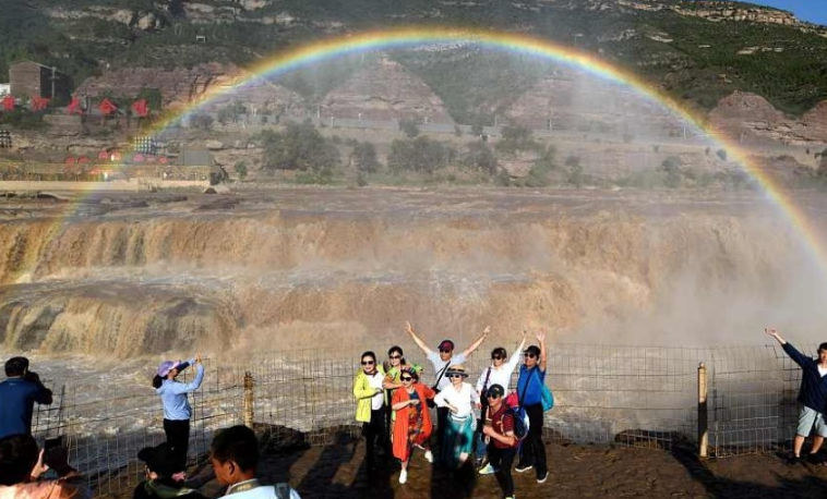 山西臨汾:黃河壺口瀑布現(xiàn)“彩虹門”景觀