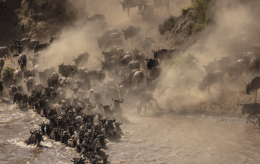 非洲角馬大軍集體遷徙 勇渡致命河流上演“生死時速”