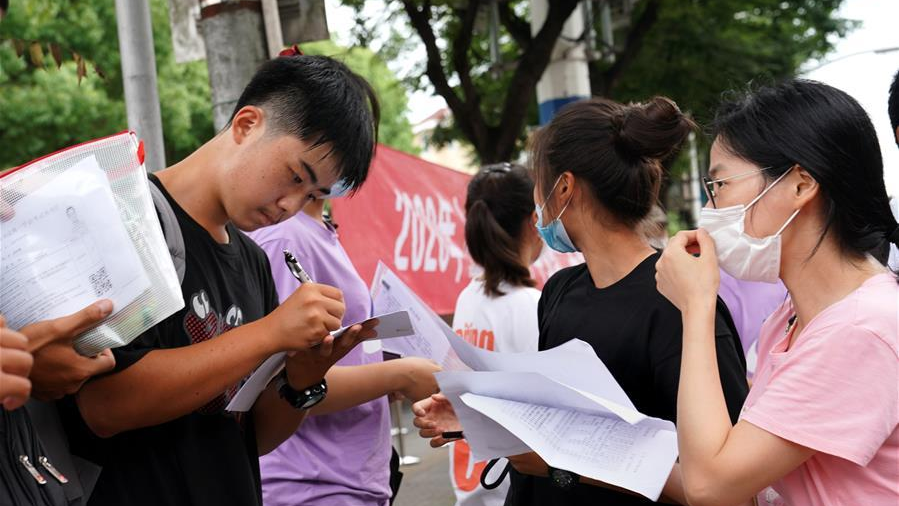 6月27日,在上海市閔行區(qū)莘松中學(xué)考點(diǎn),考生在考場內(nèi)等待開考。