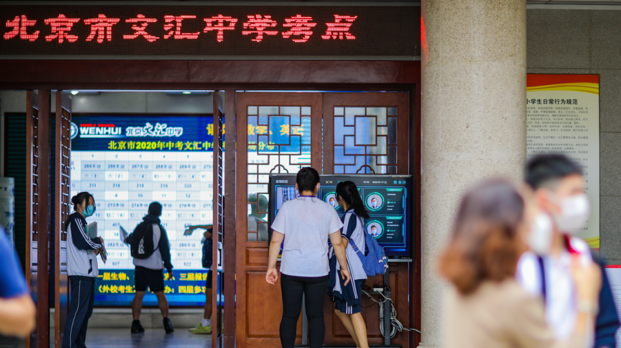2020年7月17日,2020北京中考開始,在文匯中學(xué)考點(diǎn)學(xué)生們有序進(jìn)入考點(diǎn)。