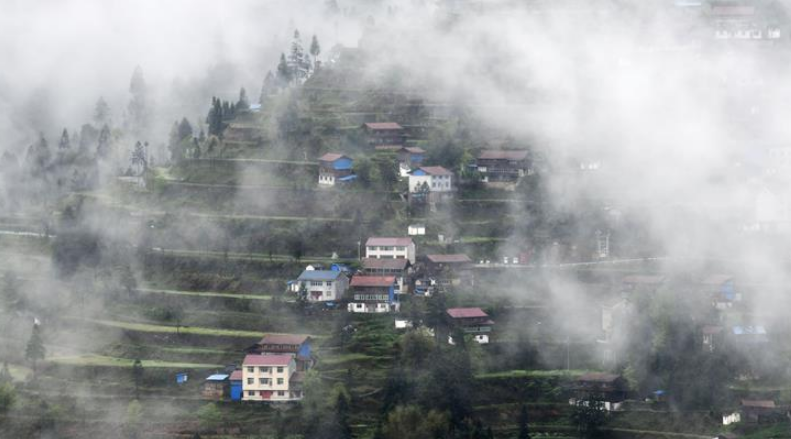 當(dāng)日,在貴州省黔東南苗族侗族自治州,一場(chǎng)春雨過(guò)后,村莊、山川、田野在薄霧中若隱若現(xiàn),美若畫(huà)卷。
