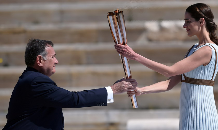 2020年3月18日,2020年?yáng)|京奧運(yùn)會(huì)火炬交接儀式在希臘雅典帕納辛奈科體育場(chǎng)舉行。