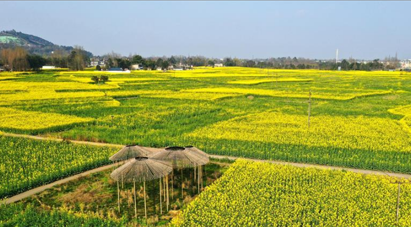 初春時節(jié),正值農(nóng)時。成都平原西部的大邑、崇州等縣市油菜長勢良好,一片生機盎然的景象。