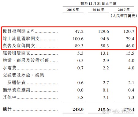 土巴兔的銷售人員開支從2015年的4720萬元大幅增至2016年的1.29億元,并在2017年維持1.2億元左右高位。不過隨著公司規(guī)?;\(yùn)營的展開,公司線上買量開支卻從1億元降至7940萬元。