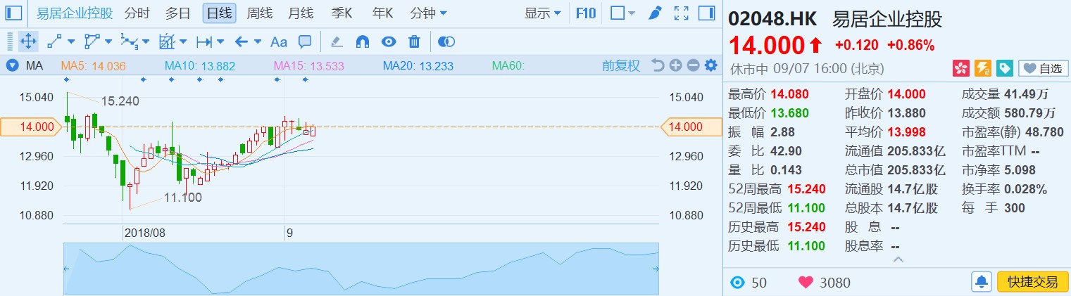 易居是國內(nèi)最大的房地產(chǎn)服務商,伴隨港股一波熱鬧非凡的上市潮,成立剛滿18年的易居于7月20日風風火火上市,之后也在新股“破發(fā)潮”中慘遭錯殺,一度下探至11.1港元,但價值總會回歸,隨著易居的商業(yè)模式和業(yè)績被市場認可,股價逐步回升。