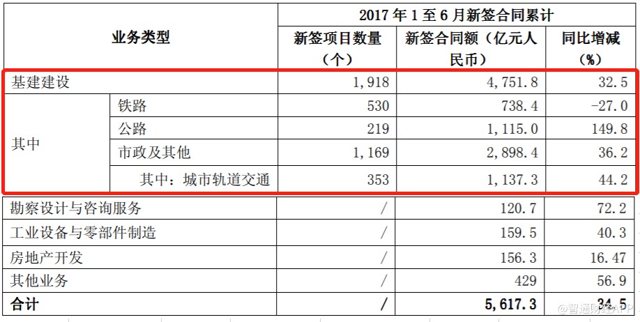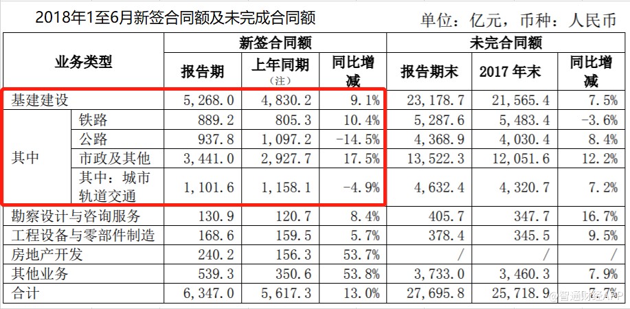 今年上半年,中國中鐵基建建設(shè)業(yè)務(wù)新簽合同5268億元,同比增長9.1%,盡管依然維持增長,但增速較2017年上半年的32.5%大幅放緩,其中公路及城市軌道交通新簽合同額錄得負增長。